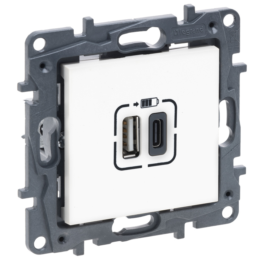 Nabíječka USB A+C bílá nové řady výrobce Legrand.