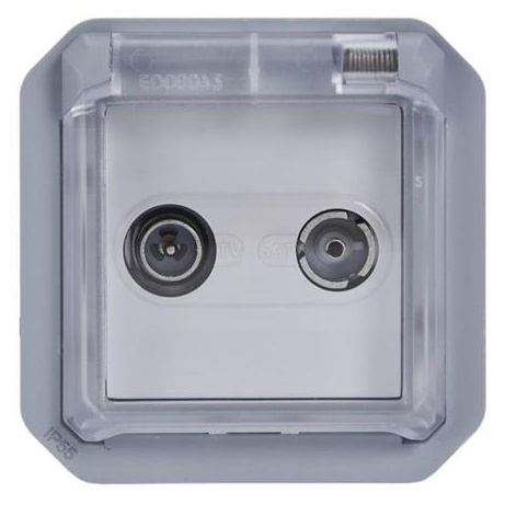 Zásuvka Legrand Plexo New 069554L je koncová TV/R/SAT zásuvka navržená pro spolehlivé a kvalitní připojení televizních a satelitních signálů. Vyznačuje se odolným provedením s krytím IP55 a rázovou pevností IK08, což zaručuje ochranu proti prachu, vlhkosti a mechanickému poškození. Díky kompaktním rozměrům a matnému povrchu se hodí do moderních elektroinstalačních systémů. Je vyrobena z bezhalogenového termoplastu a určena pro instalaci do prostředí s teplotou od -5 °C do +35 °C.