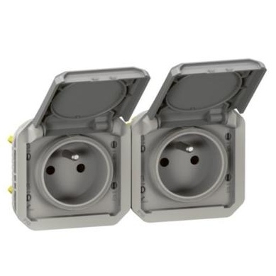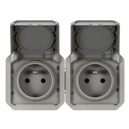 Legrand Plexo New 069562L dvojnásobná zásuvka 2×2P+T horizontální, šedá, IP55, pouze přístroj