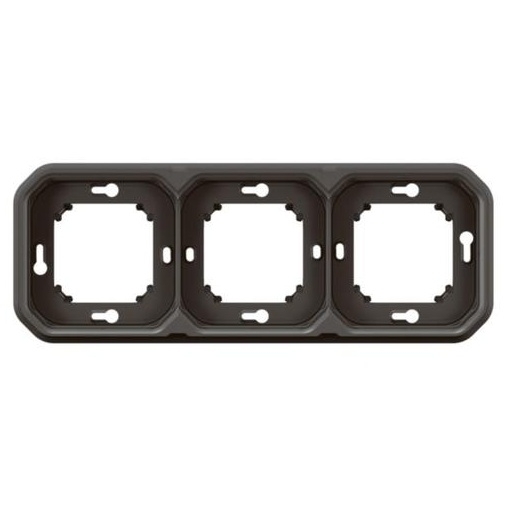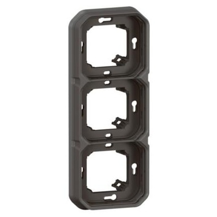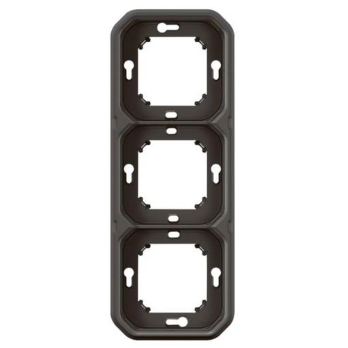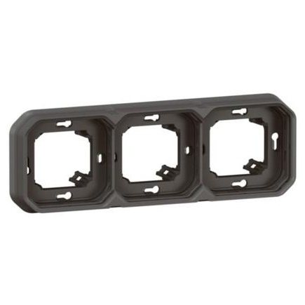 Trojnásobný montážní rámeček Legrand Plexo New 069608L v antracitovém provedení je určen pro zapuštěnou montáž a umožňuje horizontální i vertikální umístění. Je vyroben z odolného bezhalogenového termoplastu s matným povrchem pro dlouhou životnost a moderní vzhled. Instalace je snadná díky pevnému šroubovému upevnění. Tento rámeček je vhodný pro použití v domácnostech, komerčních i průmyslových instalacích v rámci systému Plexo New.