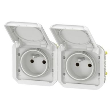 Legrand Plexo New 069642L dvojnásobná zásuvka 2×2P+T horizontální, bílá, IP55, pouze přístroj