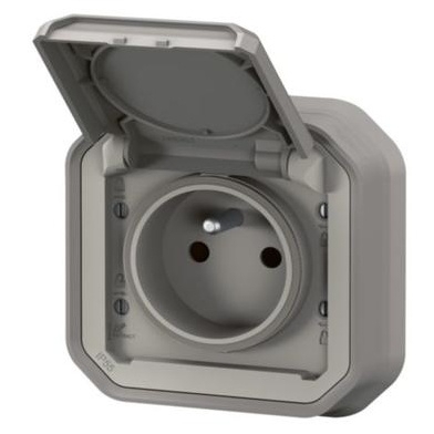 Legrand Plexo New 069831L zásuvka 2P+T s dětskými clonkami, šedá, zapuštěná montáž, IP55