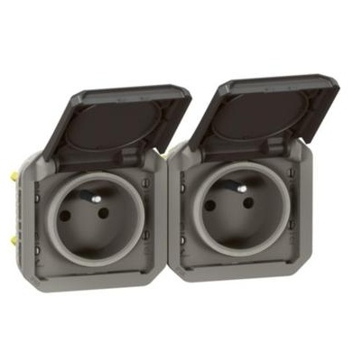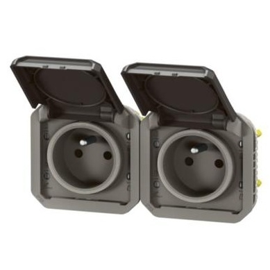 Legrand Plexo New 069842L dvojnásobná zásuvka 2×2P+T horizontální, antracit, IP55, pouze přístroj