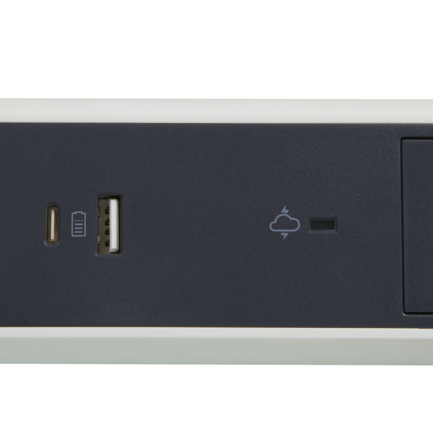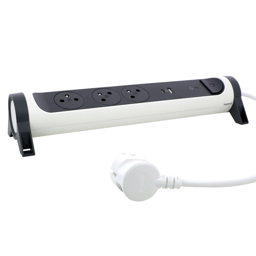 Prodlužovací přívod s válcovým otočným tělem, třemi 2P+T zásuvkami a dvěma USB porty. Díky patentu společnosti Legrand se zarovnaná dna zásuvek zasunou dovnitř až po zastrčení vidlice, tím se dosahuje atraktivního designu a zamezuje hromadění prachu. Pootočené zásuvky poskytují prostor pro připojení i objemnějších nabíječek. Prodlužovací přívod je možné upevnit v horizontální i vertikální poloze a nechybí ani spínač pro vypnutí a zapnutí a přepěťová ochrana s LED indikátorem.