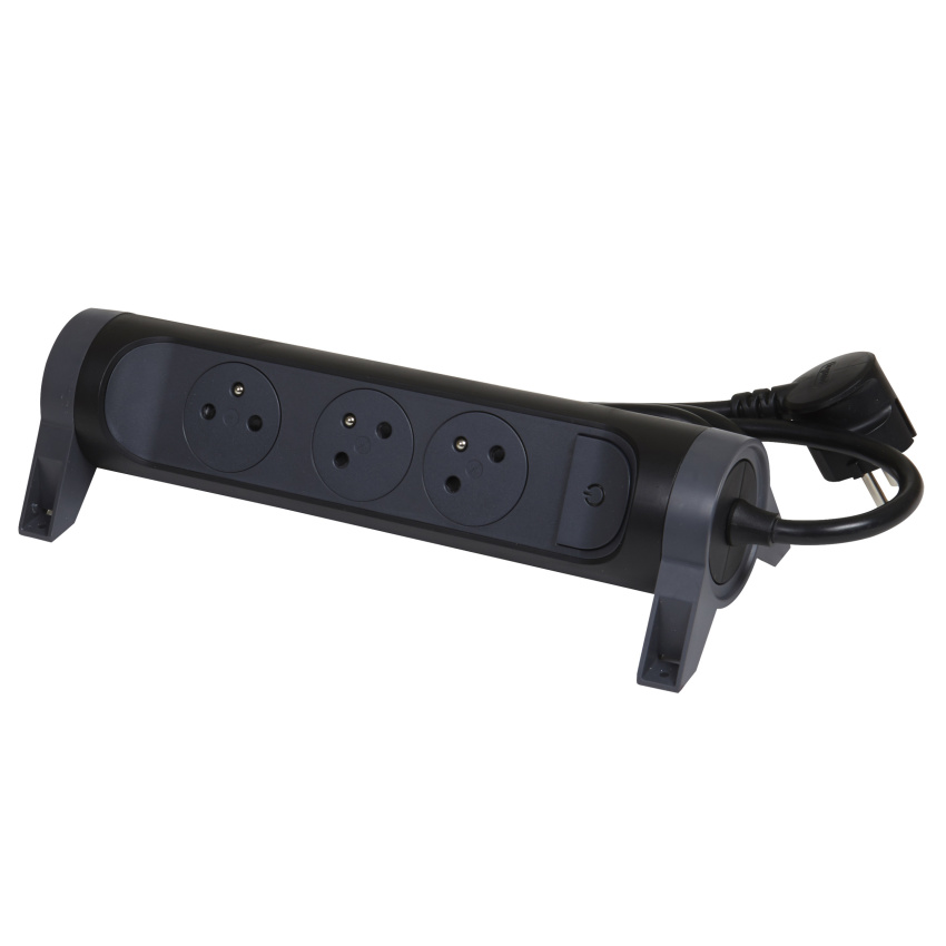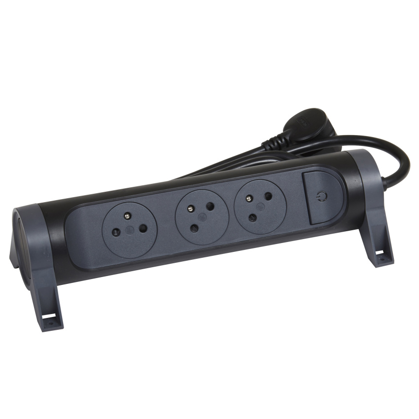 Prodlužovací přívod s válcovým otočným tělem a třemi 2P+T zásuvkami. Díky patentu společnosti Legrand se zarovnaná dna zásuvek zasunou dovnitř až po zastrčení vidlice, tím se dosahuje atraktivního designu a zamezuje hromadění prachu. Pootočené zásuvky poskytují prostor pro připojení i objemnějších nabíječek. Prodlužovací přívod je možné upevnit v horizontální i vertikální poloze a nechybí ani spínač pro vypnutí a zapnutí.