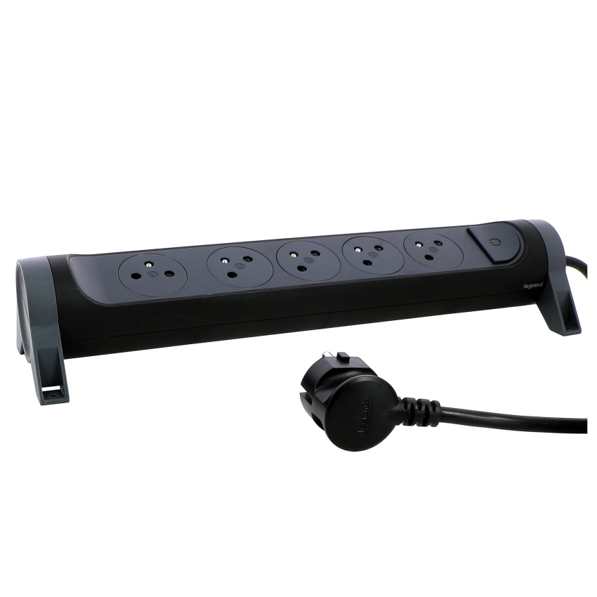 Prodlužovací přívod s válcovým otočným tělem a pěti 2P+T zásuvkami. Díky patentu společnosti Legrand se zarovnaná dna zásuvek zasunou dovnitř až po zastrčení vidlice, tím se dosahuje atraktivního designu a zamezuje hromadění prachu. Pootočené zásuvky poskytují prostor pro připojení i objemnějších nabíječek. Prodlužovací přívod je možné upevnit v horizontální i vertikální poloze a nechybí ani spínač pro vypnutí a zapnutí.