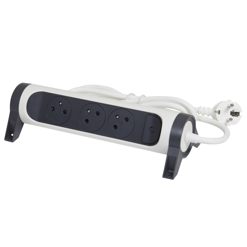 Prodlužovací přívod s válcovým otočným tělem a třemi 2P+T zásuvkami. Díky patentu společnosti Legrand se zarovnaná dna zásuvek zasunou dovnitř až po zastrčení vidlice, tím se dosahuje atraktivního designu a zamezuje hromadění prachu. Pootočené zásuvky poskytují prostor pro připojení i objemnějších nabíječek. Prodlužovací přívod je možné upevnit v horizontální i vertikální poloze a nechybí ani spínač pro vypnutí a zapnutí.