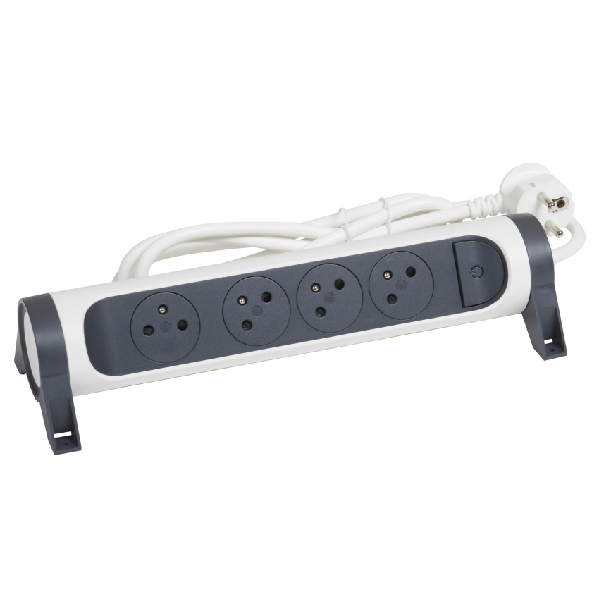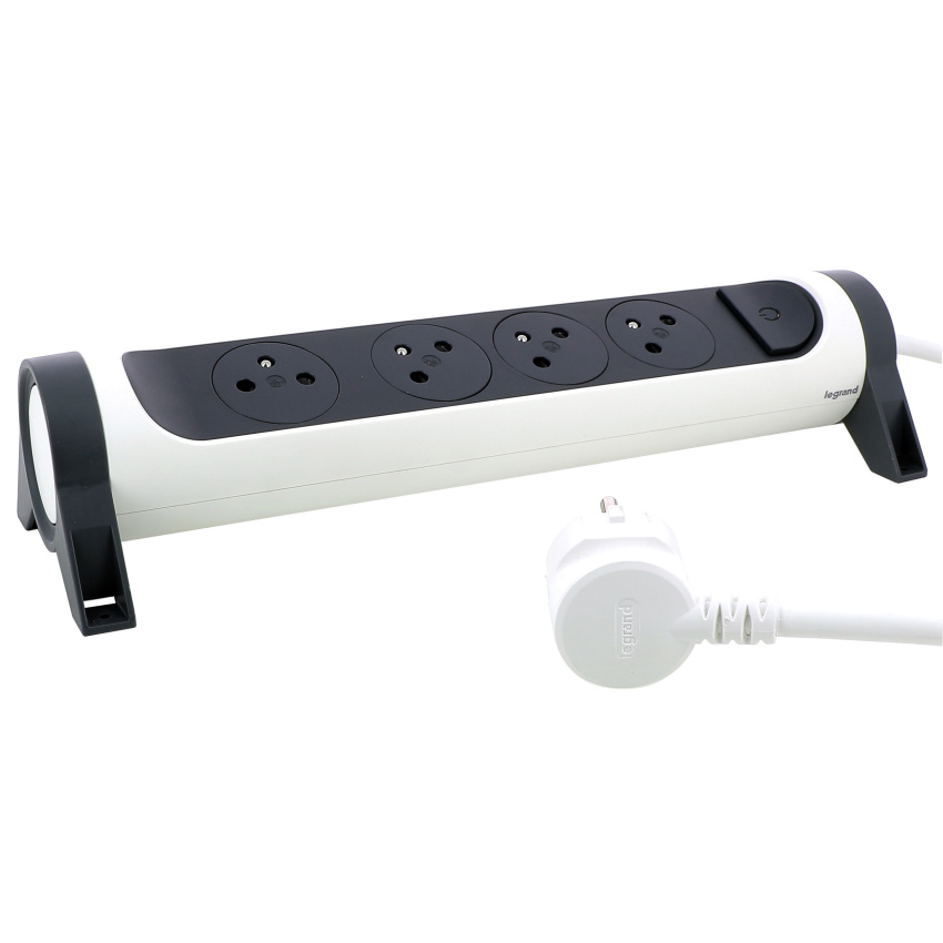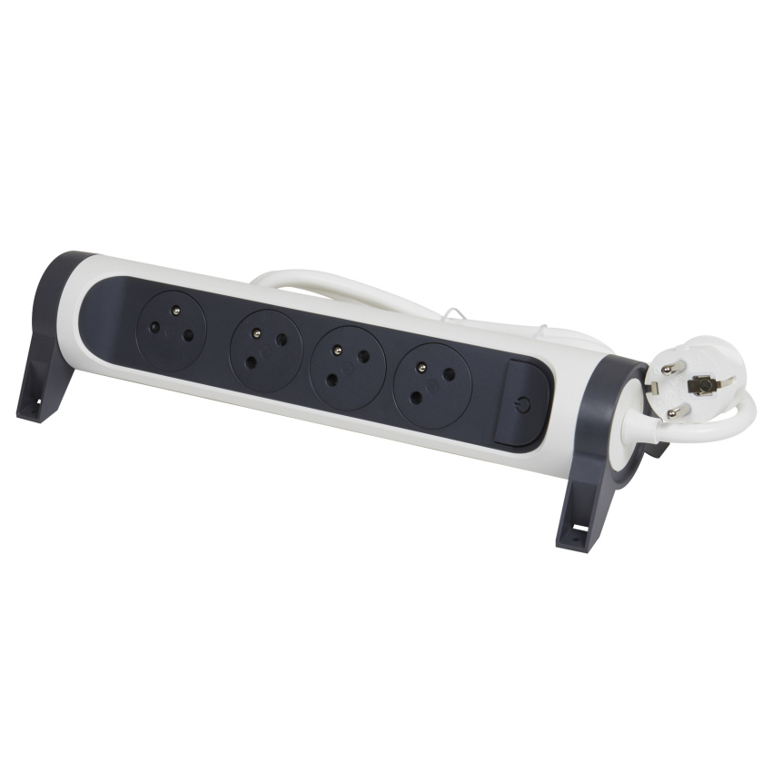 Prodlužovací přívod s válcovým otočným tělem a čtyřmi 2P+T zásuvkami. Díky patentu společnosti Legrand se zarovnaná dna zásuvek zasunou dovnitř až po zastrčení vidlice, tím se dosahuje atraktivního designu a zamezuje hromadění prachu. Pootočené zásuvky poskytují prostor pro připojení i objemnějších nabíječek. Prodlužovací přívod je možné upevnit v horizontální i vertikální poloze a nechybí ani spínač pro vypnutí a zapnutí.