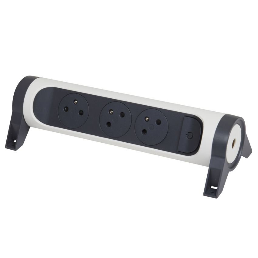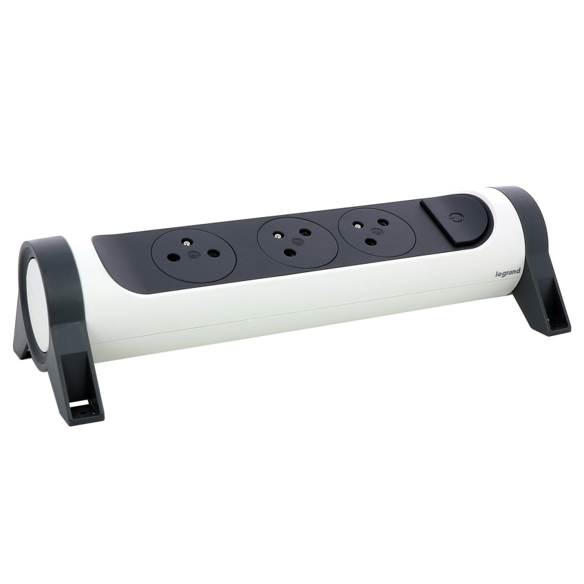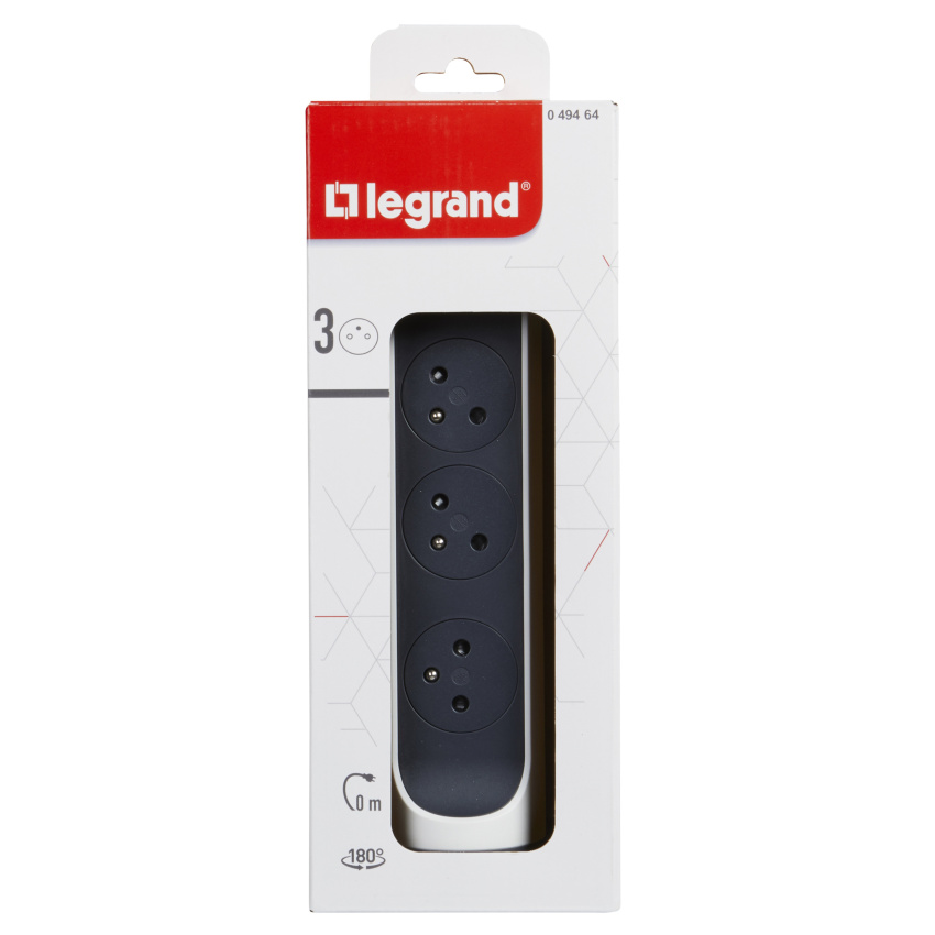 Prodlužovací přívod s válcovým otočným tělem a třemi 2P+T zásuvkami. Díky patentu společnosti Legrand se zarovnaná dna zásuvek zasunou dovnitř až po zastrčení vidlice, tím se dosahuje atraktivního designu a zamezuje hromadění prachu. Pootočené zásuvky poskytují prostor pro připojení i objemnějších nabíječek. Prodlužovací přívod je možné upevnit v horizontální i vertikální poloze a nechybí ani spínač pro vypnutí a zapnutí.