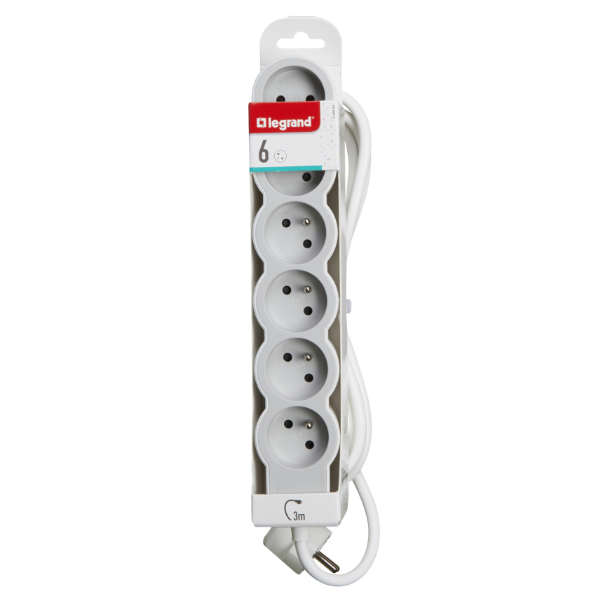 Prodlužovací přívod se šesti 2P+T zásuvkami.