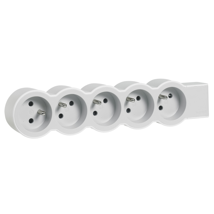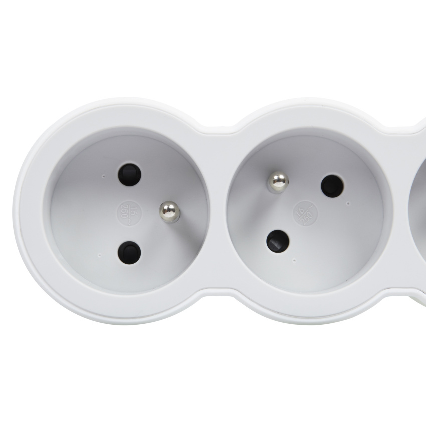 Prodlužovací přívod bez kabelu s pěti 2P+T zásuvkami.