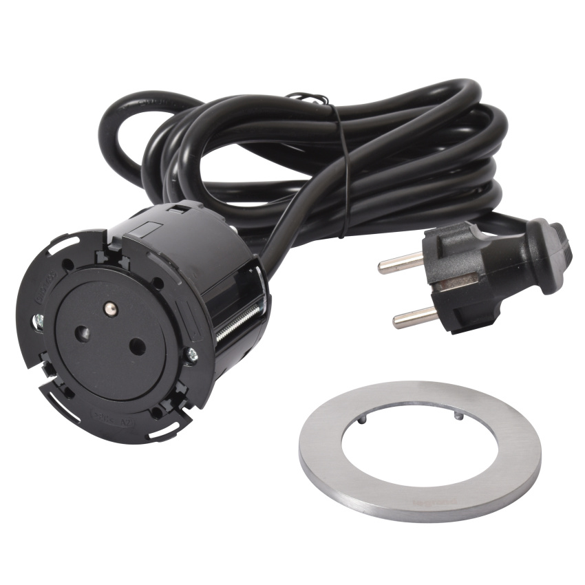 DISQ 60 ZAPUŠTĚNÁ ZÁSUVKA 2P+T V ČERNA/KOV 2M KABEL S VIDLICÍ 2P+T DISQ 60 ZAPUŠTĚNÁ ZÁSUVKA 2P+T V ČERNA/KOV 2M KABEL S VIDLICÍ 2P+T