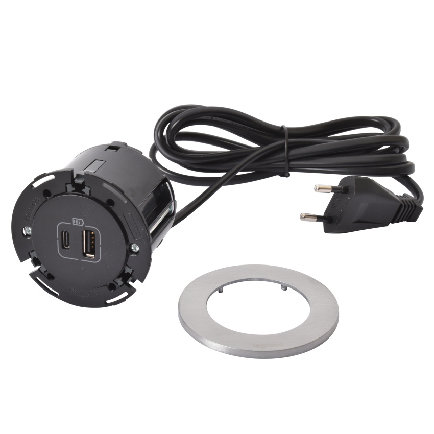 DISQ 60 ZAPUŠTĚNÁ NABÍJEČKA USB A+C ČERNÁ/KOV 2M KABEL S VIDLICÍ 2P+T DISQ 60 ZAPUŠTĚNÁ NABÍJEČKA USB A+C ČERNÁ/KOV 2M KABEL S VIDLICÍ 2P+T