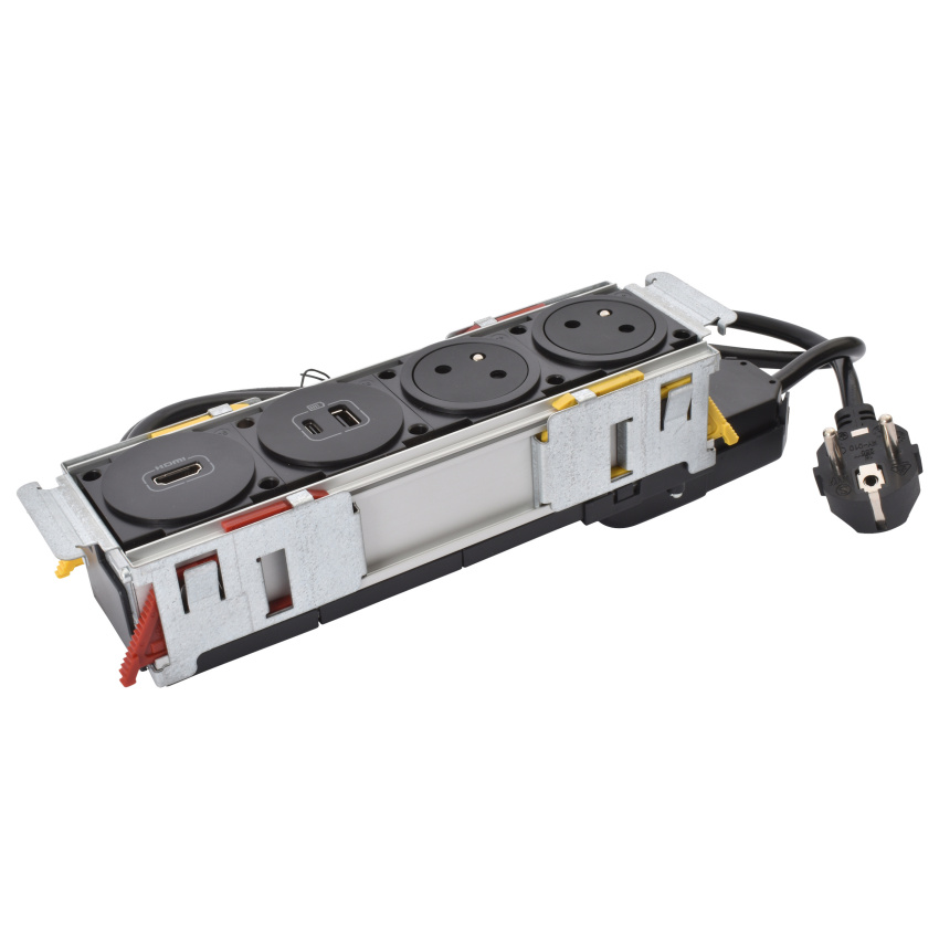 DISQ'IN ZAPUŠTĚNÝ ZÁSUVKOVÝ BLOK 2X2P+T USB A+C HDMI ČERNÁ 2M KABEL S VIDLICÍ 2P+T DISQ'IN ZAPUŠTĚNÝ ZÁSUVKOVÝ BLOK 2X2P+T USB A+C HDMI ČERNÁ 2M KABEL S VIDLICÍ 2P+T