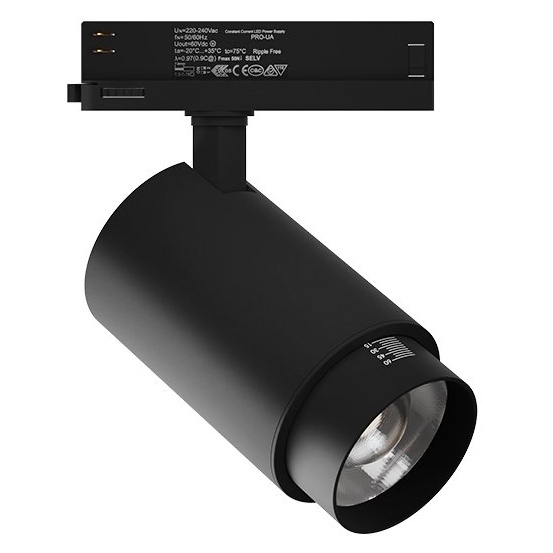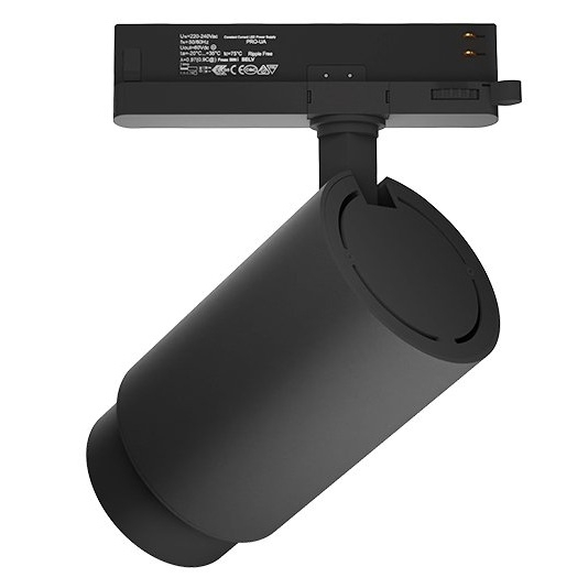 Svítidlo je určeno pro montáž do lištových systémů s napájením 220–240 V, má krytí IP20 a třídu ochrany I. Je stmívatelné a jeho konstrukce umožňuje snadnou manipulaci a nastavení směru světla. Díky životnosti až 50 000 hodin a modernímu černému designu se jedná o spolehlivé a esteticky čisté řešení pro interiérové osvětlení.