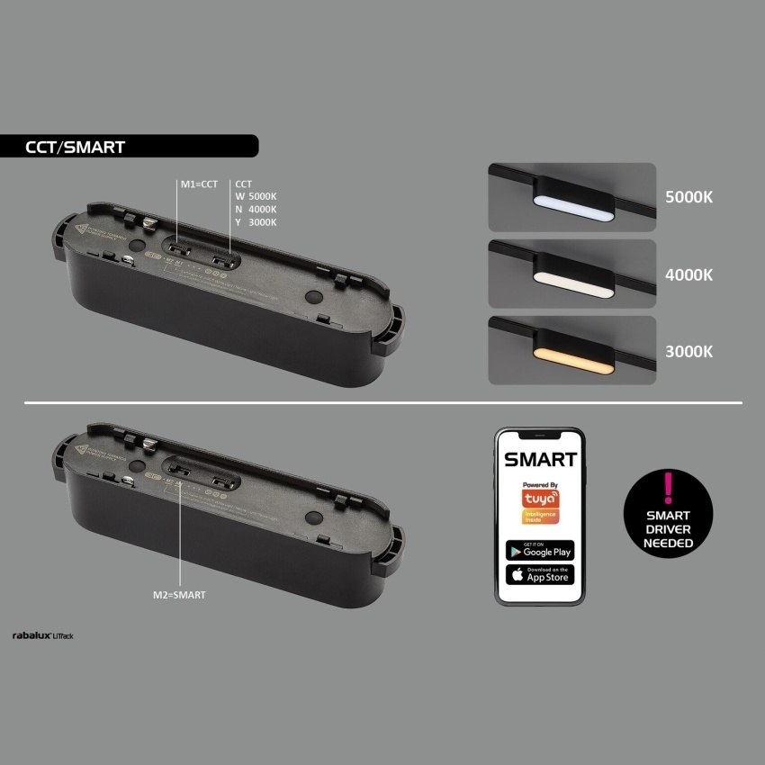 Kolejnicové LED svítidlo Rabalux LiTrack Line v černobílém provedení s integrovaným LED zdrojem a nastavitelnou teplotou světla.