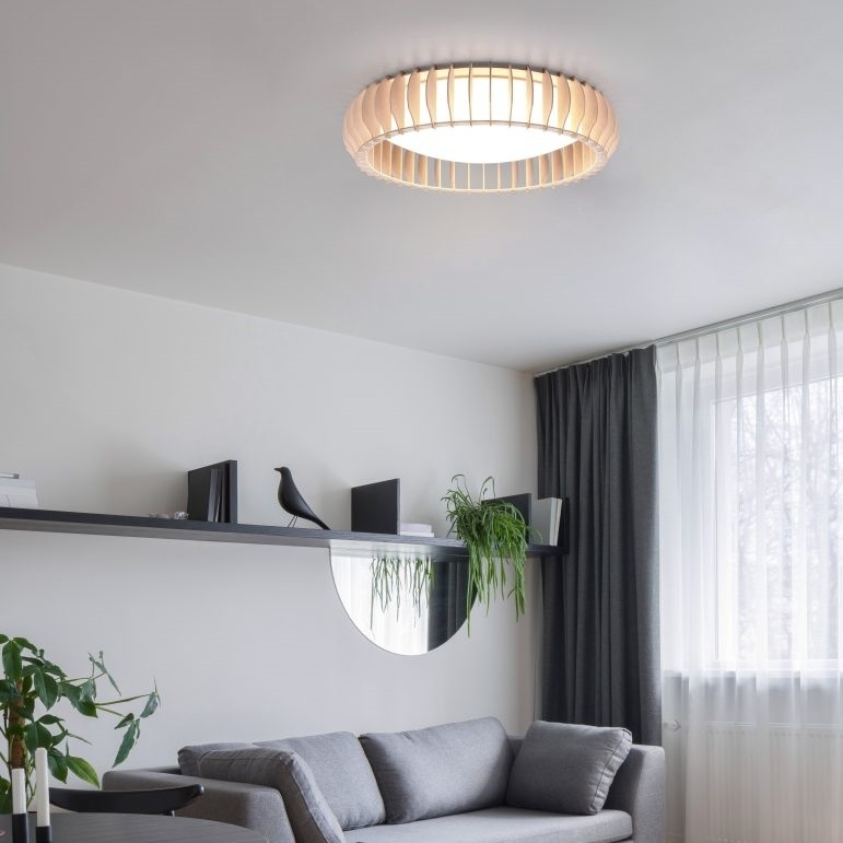 Moderní stropní LED svítidlo MONTE spojuje elegantní design s praktickými funkcemi. Kombinace bílého plastu a dřevěného dekoru dodává interiéru útulný vzhled, zatímco uspořádané stínicí prvky rovnoměrně rozptylují světlo do všech směrů. Pomocí dálkového ovladače lze jednoduše nastavit jas i teplotu světla v rozsahu od teplé po studenou bílou. Díky úsporné LED technologii nabízí svítidlo vysokou svítivost při nízké spotřebě energie a dlouhou životnost. Skvěle se hodí do obývacího pokoje, jídelny, ložnice i pracovny.