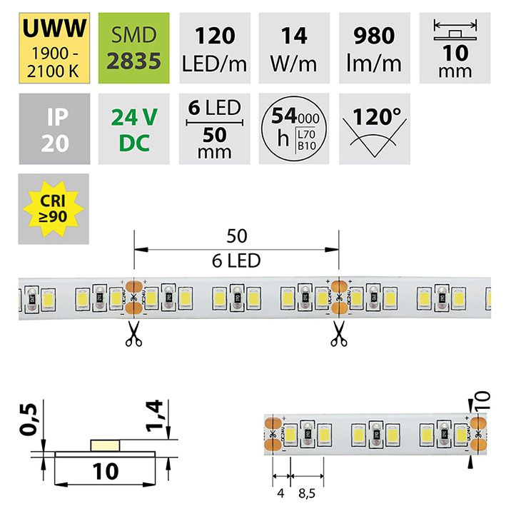 Počet LED na metr | 120 |