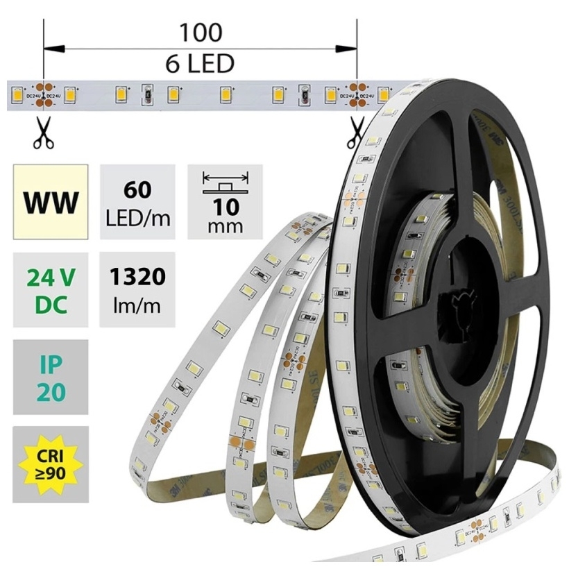 MCLED LED pásek SMD2835 WW, 60 LED/m, 14,4 W/m, 24 V, 1320 lm/m, IP20, 5 m