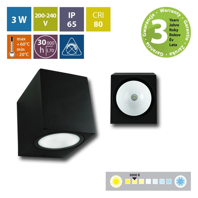 LED svítidlo Revos S, 3W, 3000K, IP65, černá barva