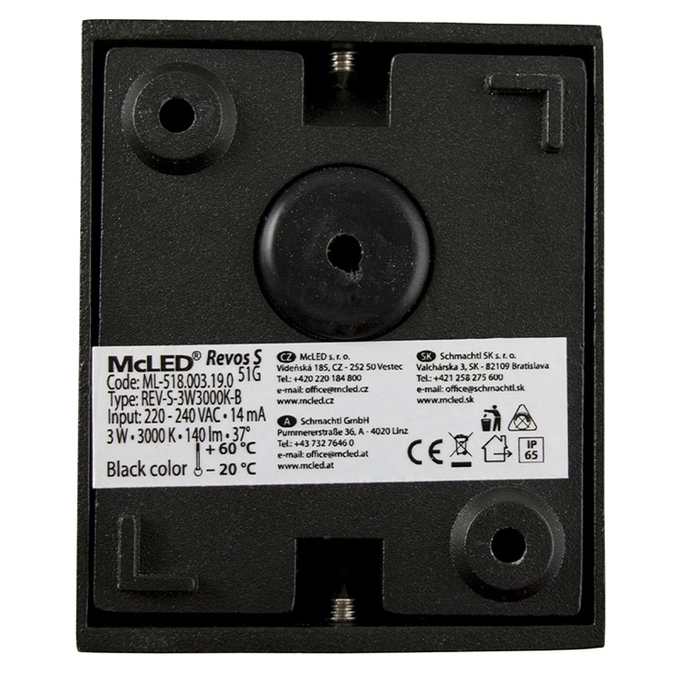 Kompaktní nástěnné LED svítidlo McLED Revos S je ideální volbou pro venkovní osvětlení fasád, balkónů, vstupů nebo teras. Nabízí světelný tok 140 lm při příkonu pouhých 3 W a teplé bílé světlo (3000 K). Odolné provedení z hliníku a čirého skla v kombinaci s krytím IP65 zajišťuje dlouhou životnost a ochranu proti vnějším vlivům. Svítidlo má úzký vyzařovací úhel 37° pro efektivní směrové nasvícení a snadno se instaluje díky přímému připojení na 230 V. Vhodné i pro použití s pohybovým čidlem.