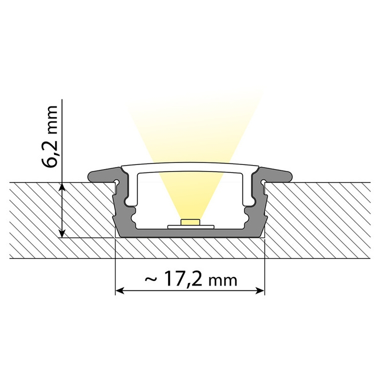 Vestavný hliníkový profil černý pro LED pásky, rozměry průřezu cca 23x8 mm. Součástí je černý difuzor, který lze do profilu nacvaknout. Tento profil je určen pro krytí a chlazení LED pásků do šíře 12 mm. Upevnění k podkladu lze provést pomocí vrutů, lepidel. K profilu lze zakoupit koncovky.
