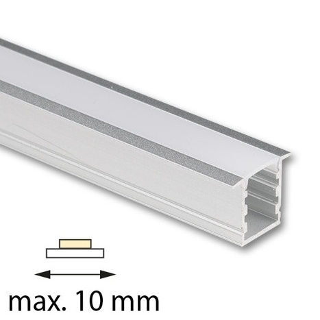 Hliníková základna k vestavnému profilu VI, bez difuzoru. Lze dokoupit mléčný difuzor. Tento profil je určen pro krytí a chlazení LED pásků do šíře až 10 mm a výkonu max. 14,4 W/m. Profil lze přivrtat nebo přilepit. K profilu s difuzorem lze zakoupit také koncovky.