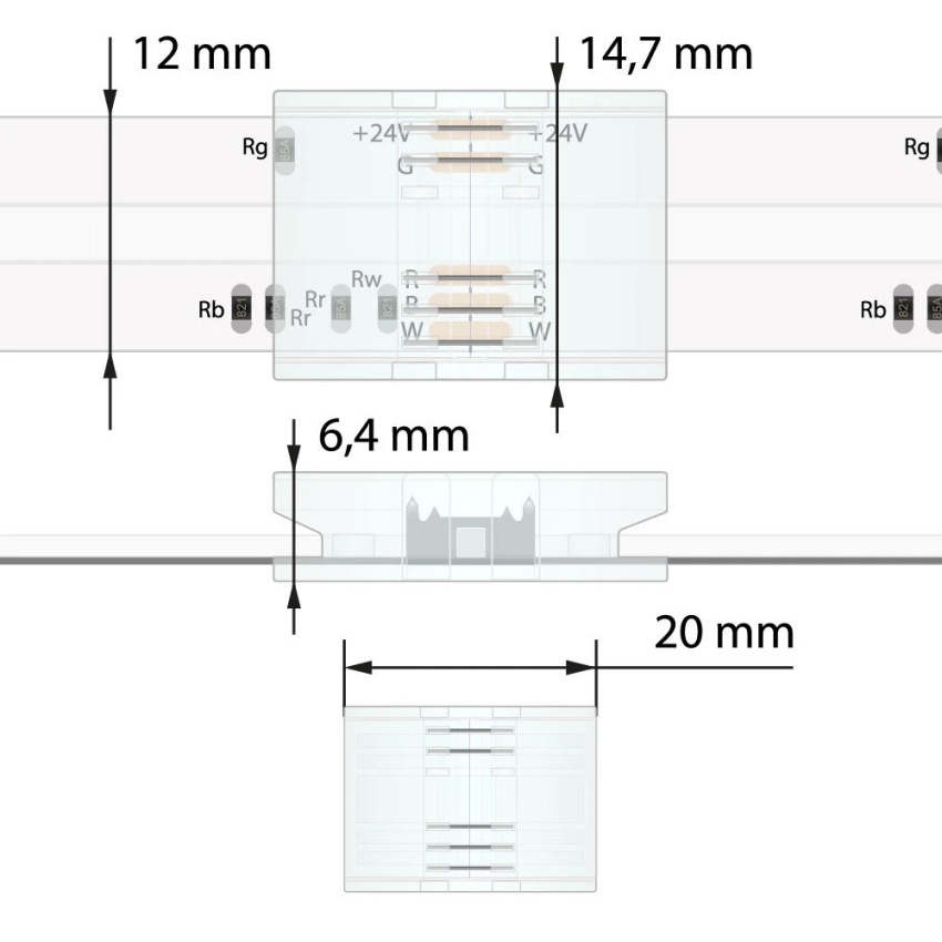 Spojka dvou RGBW COB LED pásků McLED ML-112.109.78.6 je určena pro pásky šíře 12 mm. Má 5 pinů a maximální proud 3,5 A. Rozměry jsou cca 14,7 x 20,0 x 6,4 mm. Typ příslušenství je konektor, spojka. Pro typ pásku je RGBW COB - 12 mm. Příslušenství: ano. Náhradní díl: ne. Barva: bez. Délka je 20 mm. EAN je 8595607164696.