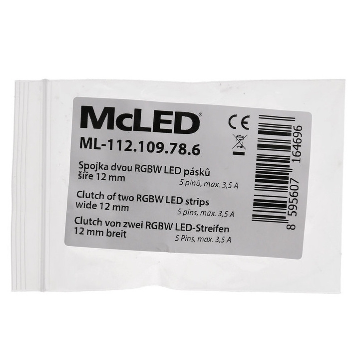 Spojka dvou RGBW COB LED pásků McLED ML-112.109.78.6, šíře 12 mm, 5 pinů, max. 3,5 A.