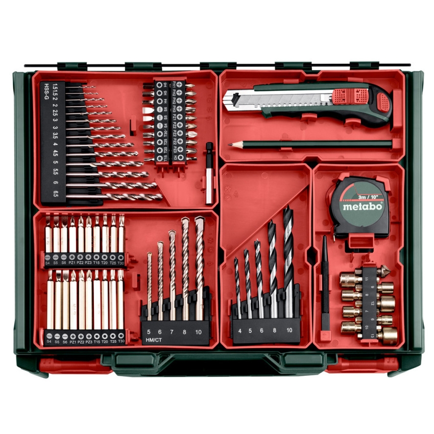 Aku-příklepová vrtačka Metabo SB 18 L BL SET 613157710 včetně 78dílné sady příslušenství.