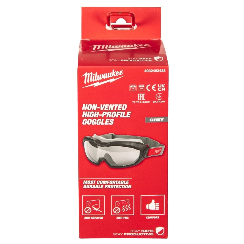 Neodvětrávané uzavřené ochranné brýle MILWAUKEE jsou široké a mají čiré čočky z polykarbonátu. Čočky jsou odolné, s ochranou proti poškrábání a s dlouhotrvající ochranou proti zamlžování. Brýle poskytují zvýšenou ochranu proti nárazu a ochranu proti stříkající vodě a tekutinám; provedení bez odvětrávání je uvedeno pro práci s plyny a parami. Uvedená certifikace je EN166 a EN170 / EN172 a typ balení je dárkový box.