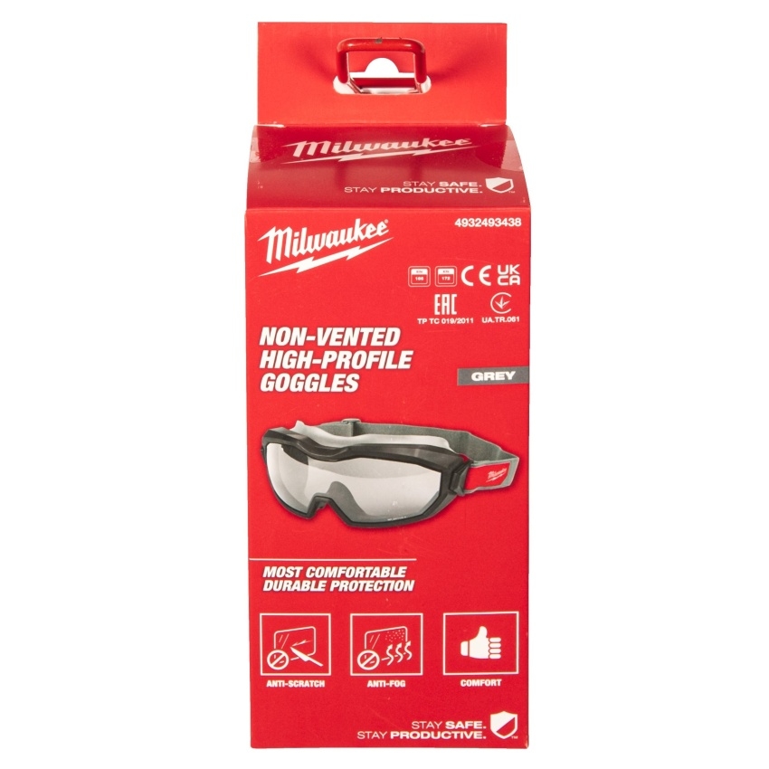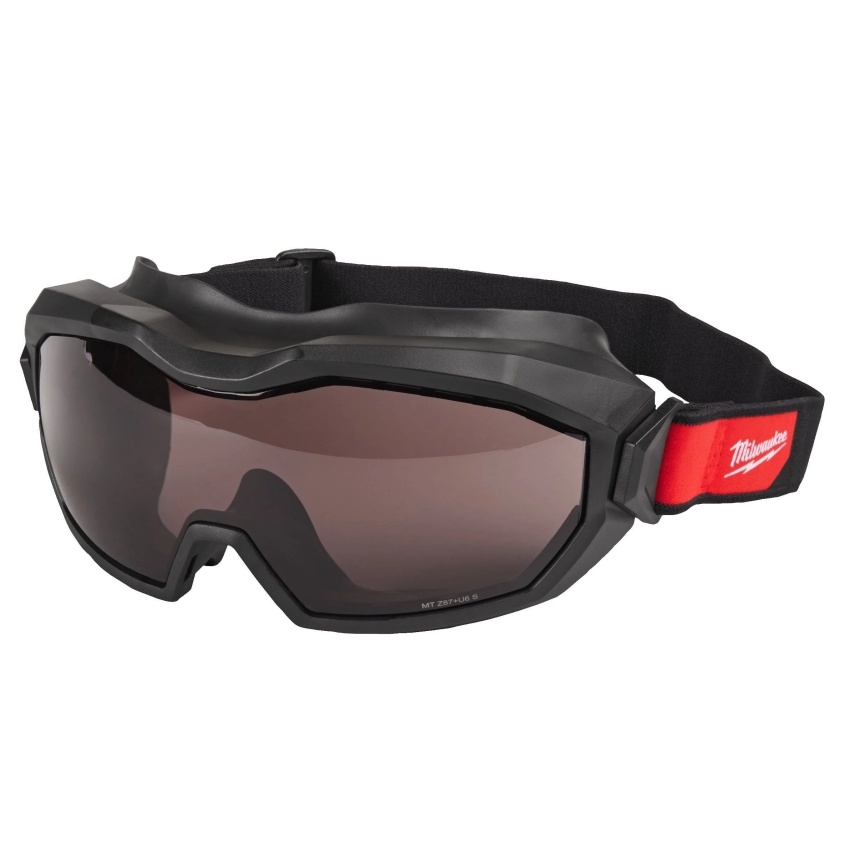 Odvětrávané uzavřené ochranné brýle MILWAUKEE široké, tónované, vhodné i přes dioptrické brýle (4932493436).