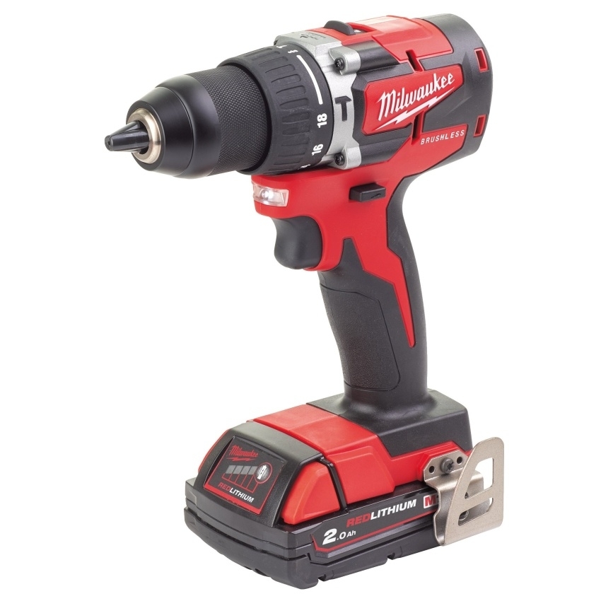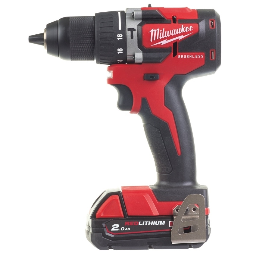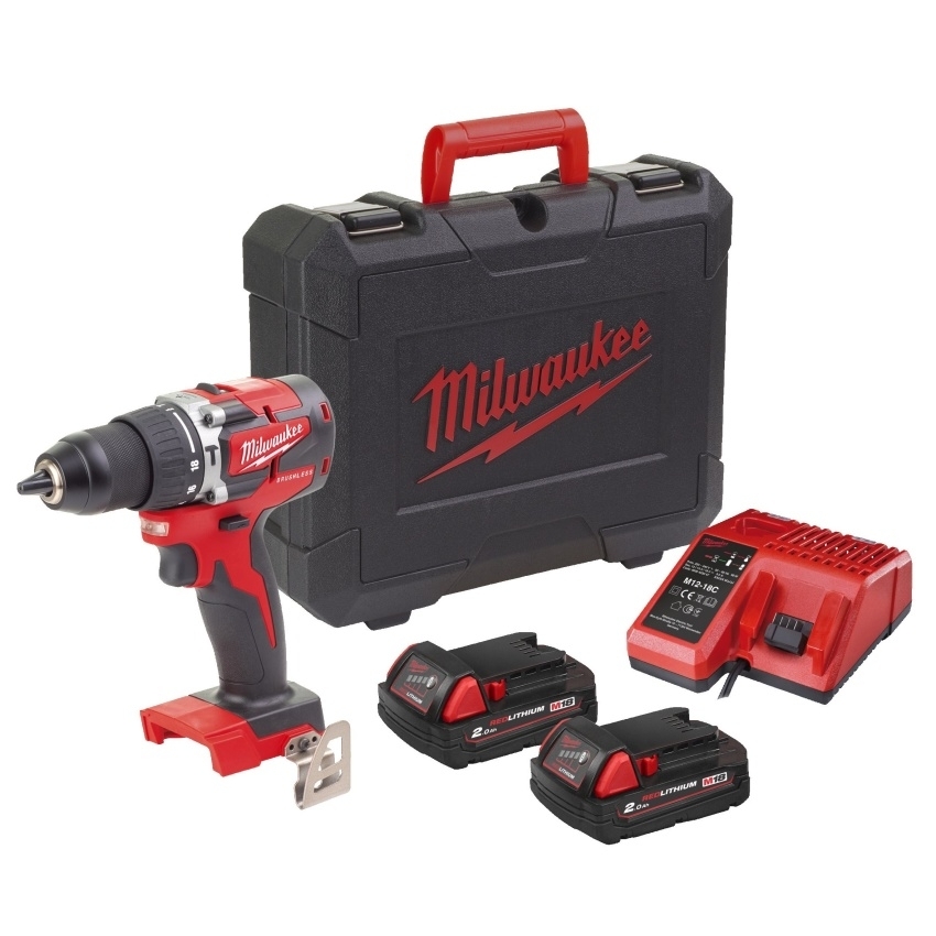 Aku kompaktní bezuhlíková vrtačka Milwaukee M18 CBLPD-202C s příklepem (2,0 Ah)