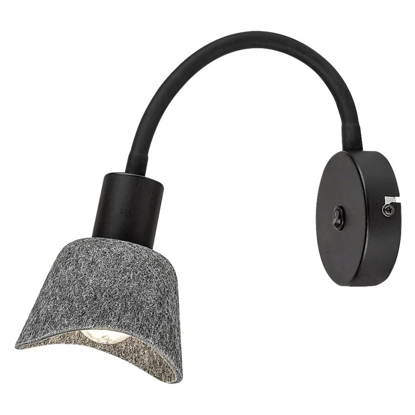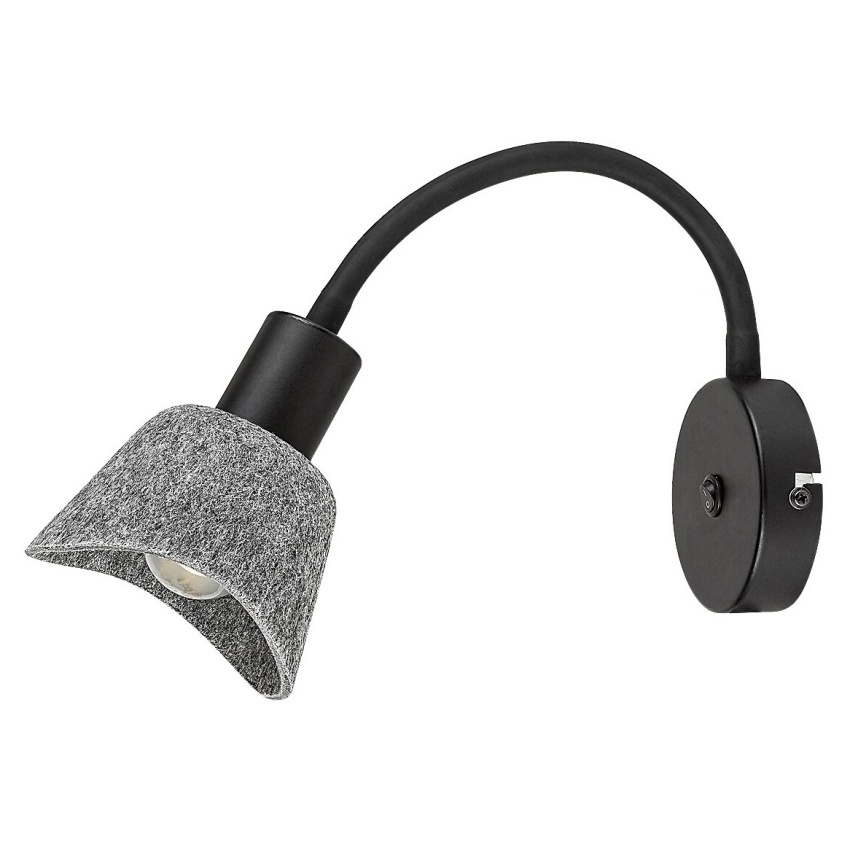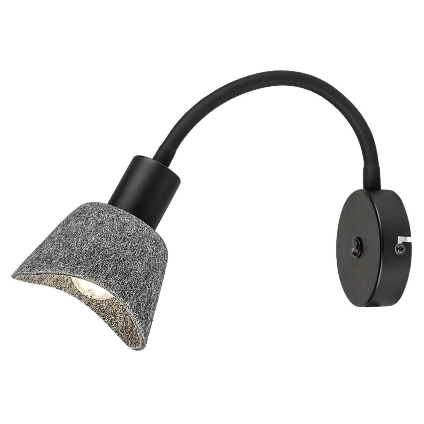 Elegantní nástěnné svítidlo Rabalux Farelia 73009 kombinuje moderní design s útulným charakterem. Kovové tělo v černé barvě doplňuje šedé plstěné stínidlo vyrobené z ekologicky šetrného recyklovaného materiálu, které vytváří měkký a příjemný světelný efekt. Dlouhé zakřivené rameno zakončené zvonkovitým stínidlem dodává lampě jedinečný vzhled. Svítidlo je vybaveno praktickým kolébkovým vypínačem umístěným na základně pro snadné ovládání. Ideálně se hodí do ložnice, obývacího pokoje nebo pracovny a je určeno pro jednu žárovku s paticí E14 o maximálním výkonu 10 W. Dodává se bez světelného zdroje.