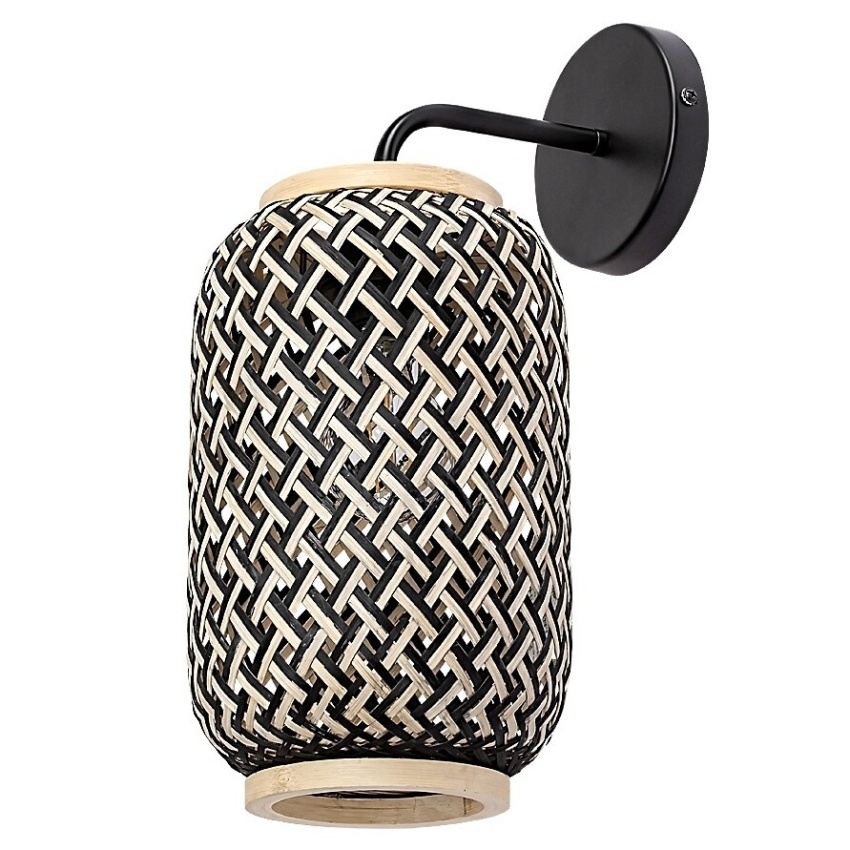 Rabalux ADALLA 71091 – nástěnné svítidlo 1×E27 ve skandinávském stylu, matná černá s ratanovým stínítkem