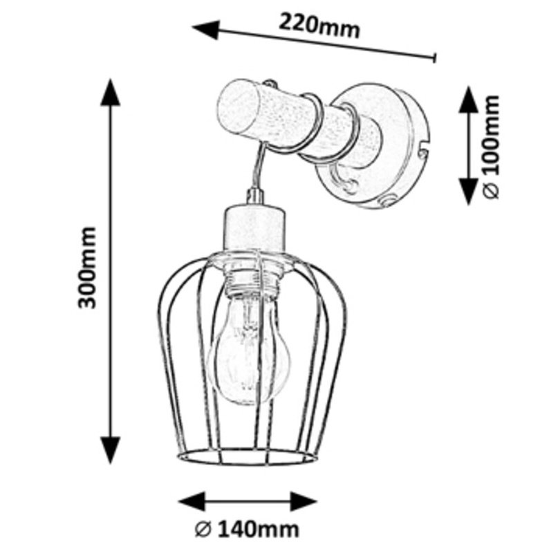 Nástěnné svítidlo Rabalux Fabian 5244 v industriálním stylu vyniká kombinací kovu a dřeva, která mu dodává autentický a přirozený vzhled. Matně černé provedení s kovovým stínítkem ve tvaru klece doplňuje dřevěný válec s navinutým kabelem, který tvoří originální designový prvek. Svítidlo poskytuje přímé světlo, ideální pro obývací pokoj, jídelnu, kuchyni nebo ložnici. Je určeno pro jednu žárovku s paticí E27 (max. 40 W) a lze jej pohodlně ovládat pomocí spínače umístěného na základně. Dodává se bez světelného zdroje.