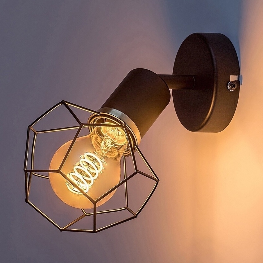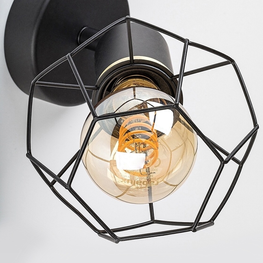 Nástěnné svítidlo Rabalux Fran 71065 ve vintage stylu zaujme svým originálním industriálním designem. Celokovové provedení v matné černé barvě doplňuje stínidlo ve tvaru diamantu s otevřenou mřížkovou konstrukcí, která umožňuje vyniknout použité žárovce. Svítidlo je ideální do obývacího pokoje, ložnice nebo pracovny, kde se stane nejen zdrojem světla, ale i dekorativním prvkem interiéru. Doporučuje se použít designovou žárovku s viditelným vláknem pro dosažení autentického vintage vzhledu. Model je určen pro jednu žárovku s paticí E27 (max. 40 W) a dodává se bez světelného zdroje.