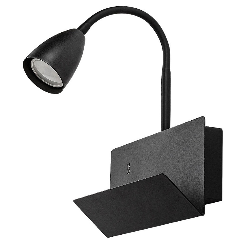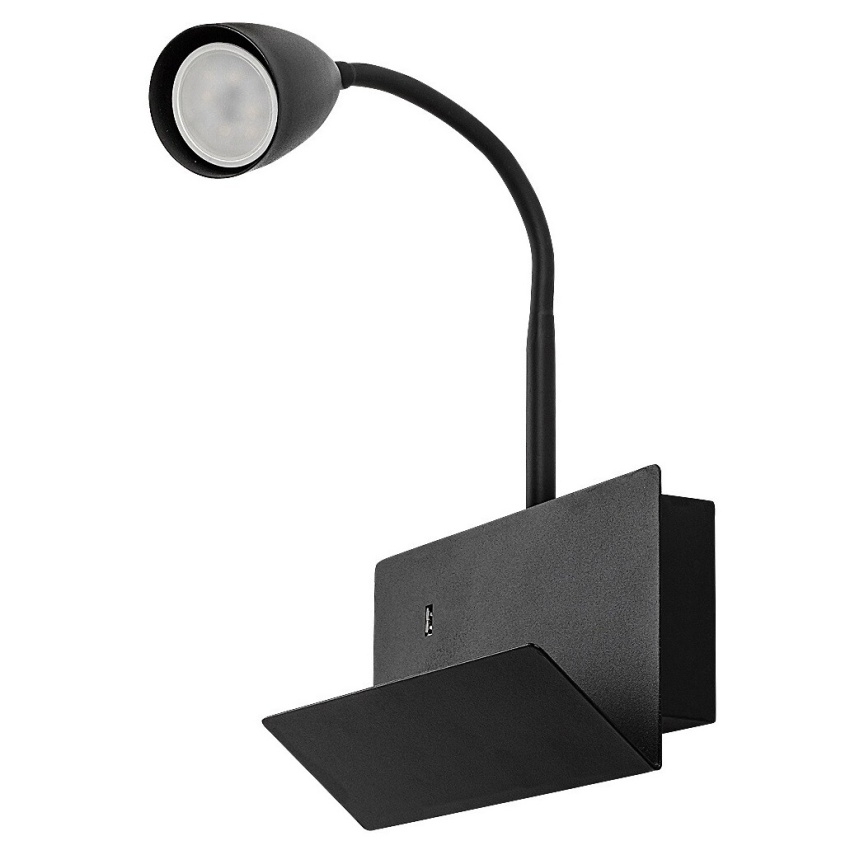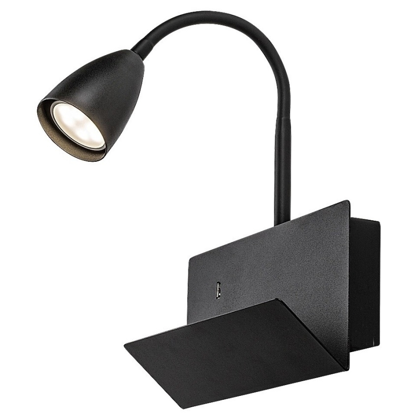 Rabalux TACITO 71089 – moderní nástěnné svítidlo 1×GU10 s USB portem, černé provedení
