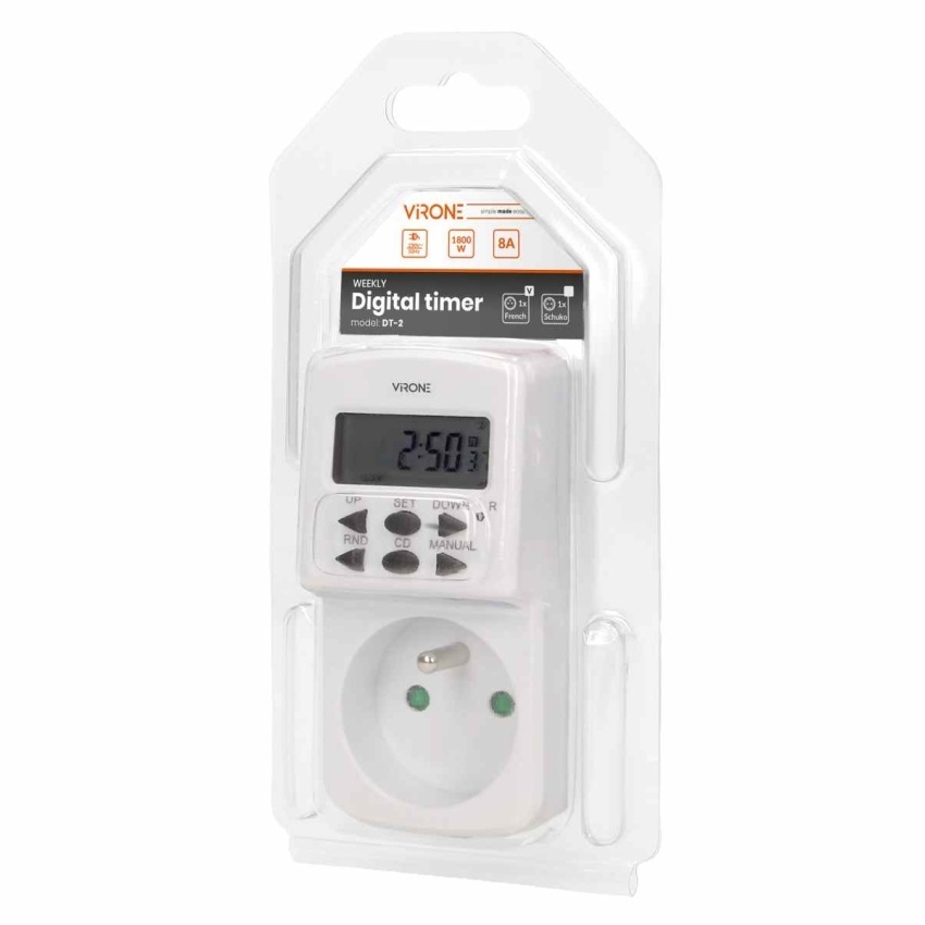 ORNO ČASOVAČ MINI DIGITÁLNÍ 10 PROGRAMŮ DT-2 od výrobce VIRONE nabízí možnost nastavení až 10 časových programů. Umožňuje přesné plánování zapnutí a vypnutí elektrických zařízení. Kompaktní design usnadňuje instalaci v různých prostorách.