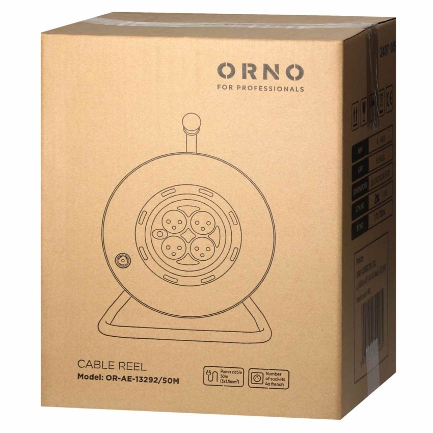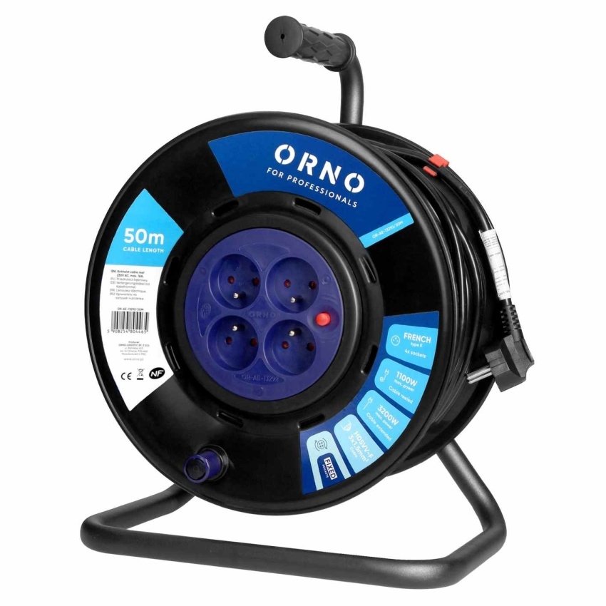 ORNO navíjecí prodlužovací kabel je vybaven čtyřmi zásuvkami a vodiči o průřezu 1,5 mm?. Kabel typu H05VV-F je potažen PVC izolací, která zajišťuje odolnost a flexibilitu. Délka 50 metrů umožňuje široké využití v různých prostorách, přičemž pevný střed navijáku usnadňuje manipulaci a skladování.