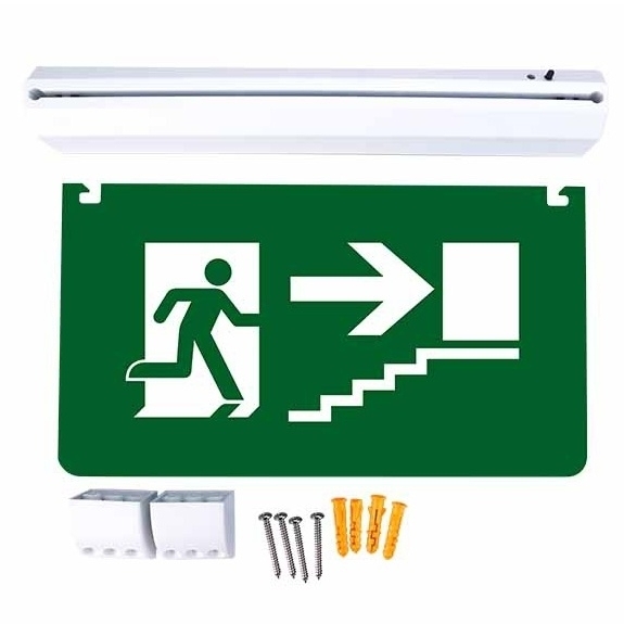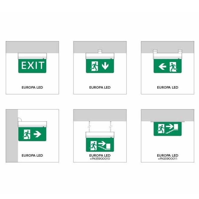Piktogram PANLUX pro nouzové svítidlo EUROPA LED určený k vyznačení směru úniku – schody nahoru. Je navržen pro oboustranné prosvětlení a spolupracuje výhradně s nouzovým svítidlem EUROPA LED. Díky jednoduché montáži a variabilním možnostem uchycení jej lze instalovat na stěnu, strop, zapustit či zavěsit. Svítidlo může pracovat jak v nouzovém, tak v permanentním režimu.