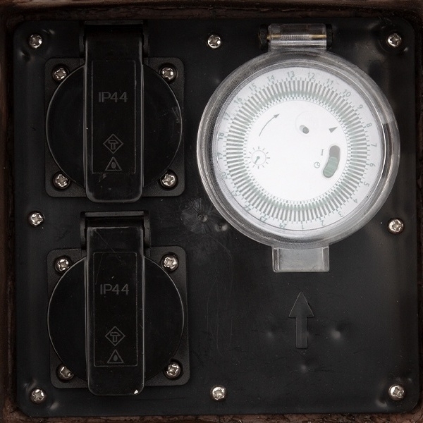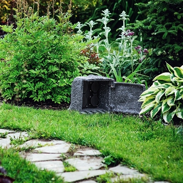PANLUX STONE 2ZT zahradní elektro-kámen, hnědý, 2 zásuvky, 1 časovač, přívodní kabel 1,8 m, IP44