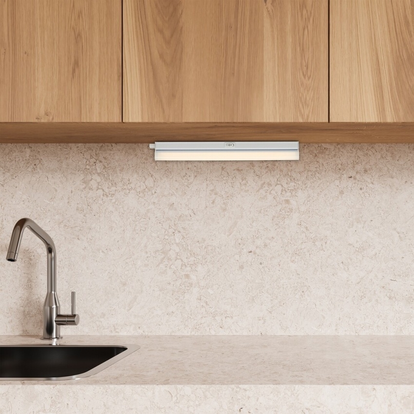 Podlinkové LED svítidlo Rabalux Bareg 78007 je moderní a praktické řešení pro osvětlení kuchyňské pracovní desky. Je vyrobeno z odolného bílého plastu a díky svému kompaktnímu provedení se snadno instaluje i do menších kuchyní. Vestavěný LED světelný zdroj s výkonem 4 W nabízí světelný tok 400 lm (500 lm bez stínidla) a umožňuje přepínání mezi dvěma teplotami světla – teplou bílou 3000 K a neutrální bílou 4000 K. Díky integrovanému spínači lze barvu světla jednoduše přizpůsobit aktuálním potřebám při vaření nebo přípravě pokrmů. Svítidlo je úsporné, má dlouhou životnost až 25 000 hodin a jeho rovnoměrné světlo vytváří příjemné pracovní prostředí bez stínů.