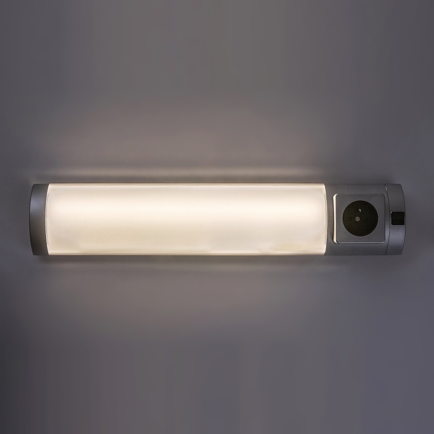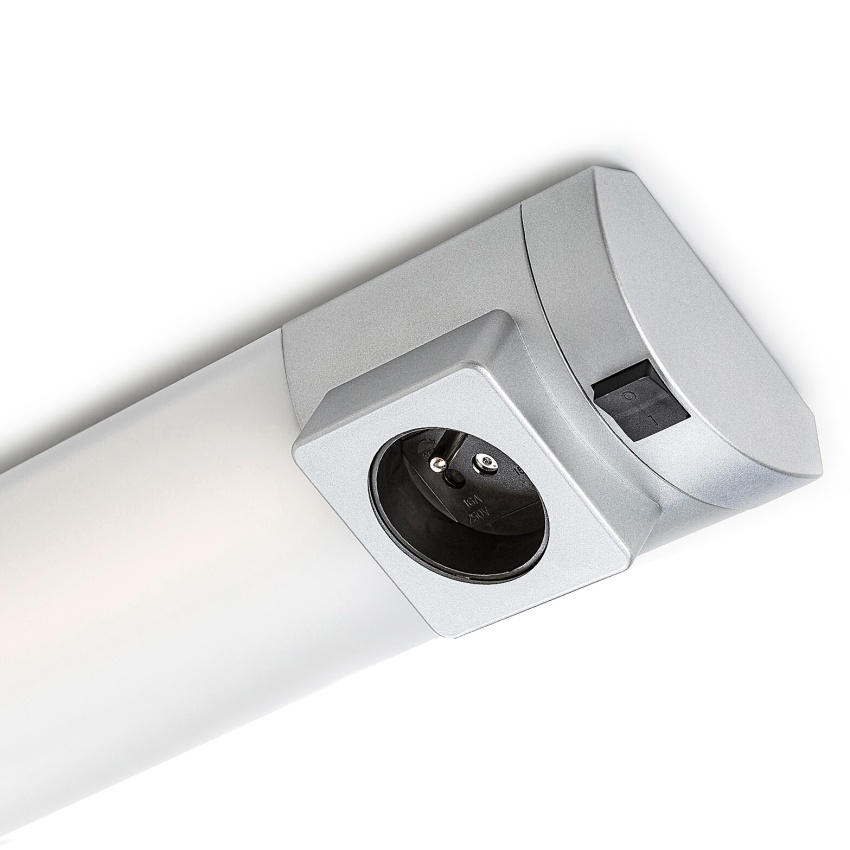 Podlinkové LED svítidlo Rabalux Soft 2E 78038 – stříbrné, 5W, 260 lm, 4000K, s vypínačem a zásuvkou
