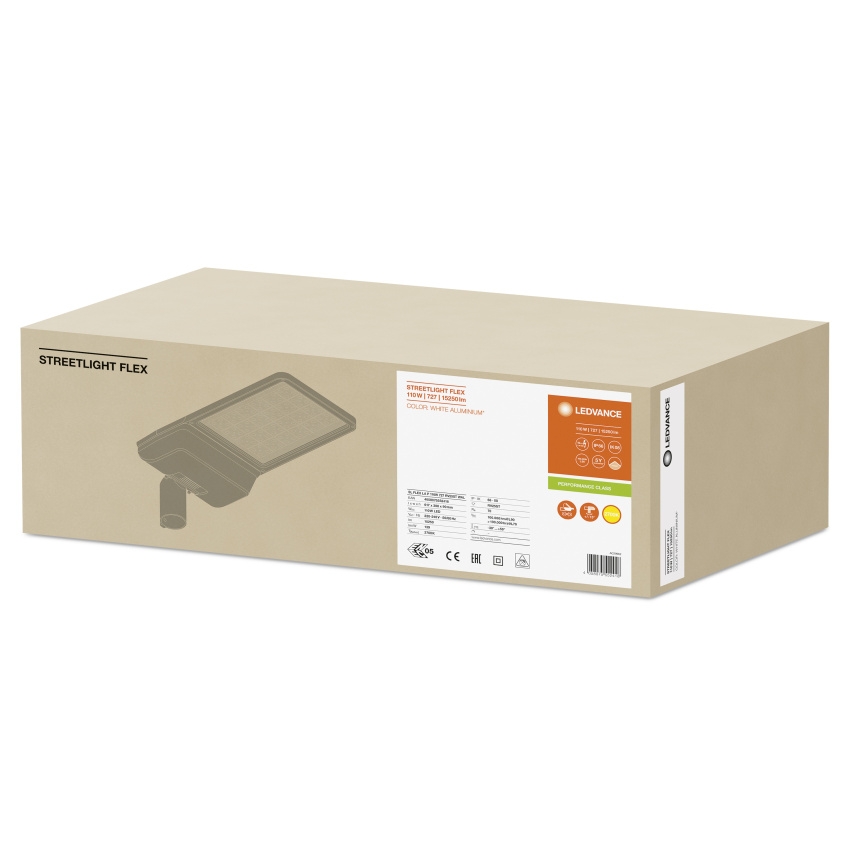 LEDVANCE SL FLEX LA P 110W 727 RV25ST WAL je moderní svítidlo pro venkovní instalace s precizní optikou optimalizovanou pro silnice, parkoviště, průmyslové a veřejné prostory. Svítidlo kombinuje odolné hliníkové tělo a tvrzené sklo s pokročilou LED technologií, která zajišťuje vysokou světelnou účinnost až 139 lm/W. Díky možnosti nastavení úhlu sklonu ±15° a jednoduchému beznástrojovému otevření krytu je instalace i údržba mimořádně snadná. Vestavěná přepěťová ochrana (10 kV), třída IP66 a mechanická odolnost IK08 zaručují dlouhou životnost až 100 000 h (L90/B10 @ 25 °C) i v náročných venkovních podmínkách.
