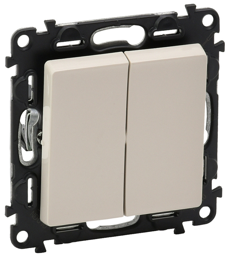 Dvojitý střídavý přepínač ř.6+6, kolébkový, bezšroubový v béžové barvě. 10 AX, 250 V AC