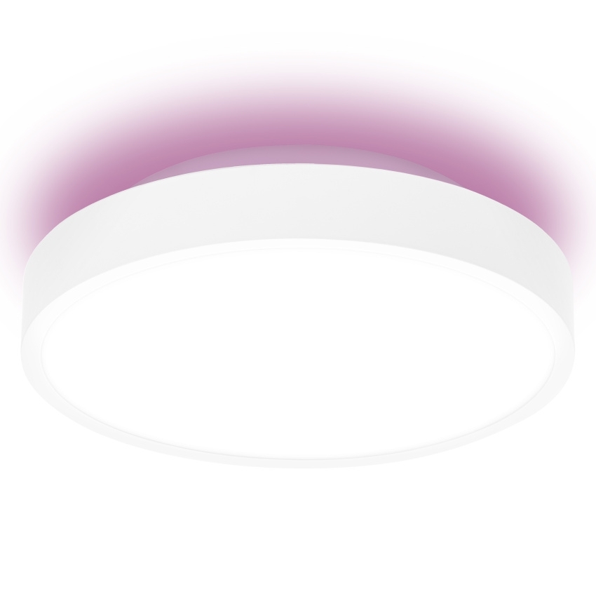 Chytré LED svítidlo LEDVANCE SMART WIFI ORBIS RD BL 350 RGBTW umožňuje ovládání prostřednictvím aplikace LEDVANCE SMART+ WiFi a podporuje hlasové řízení pomocí Google Assistant nebo Amazon Alexa. Svítidlo nabízí hlavní světlo i zadní světlo, přičemž obě mohou pracovat nezávisle. Poskytuje laditelnou bílou barvu světla v rozsahu 3000–6500 K a RGB osvětlení. Podle technických údajů má výkon 28 W, světelný tok 2400 lm, úhel paprsku 110°, index podání barev ≥ 80 a krytí IP20. Svítidlo je stmívatelné, určeno pro vnitřní použití a vyrobeno z oceli v bílé barvě. Jeho průměr činí 350 mm, výška 90 mm a hmotnost 2,11 kg. Životnost dosahuje 30 000 hodin a počet spínacích cyklů 15 000.