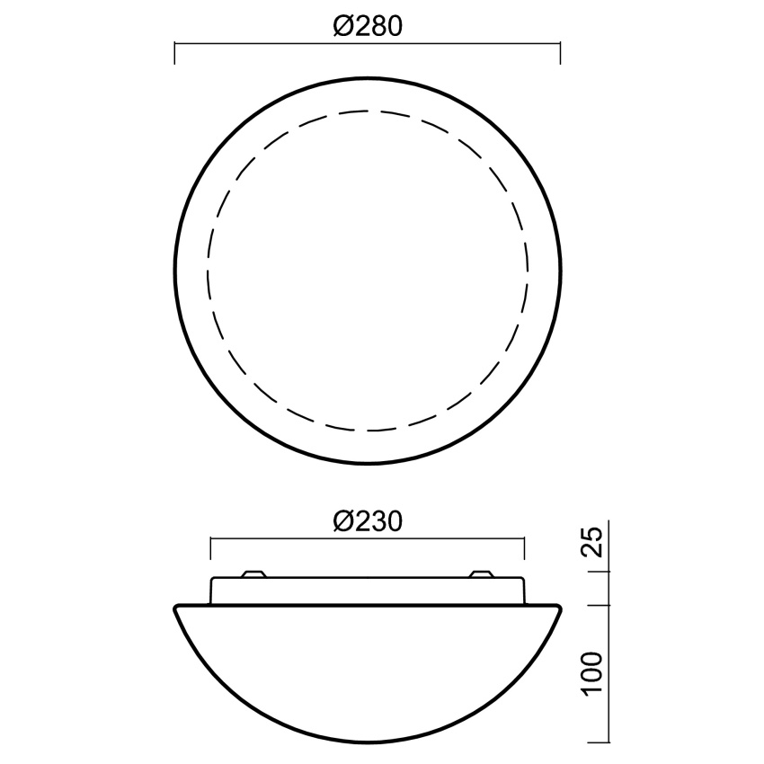 Bílé přisazené LED svítidlo s nouzovým kombinovaným provozem a stínidlem z třívrstvého skla TRIPLEX OPÁL. Příkon 11 W, světelný tok svítidla 1140 lm (200 lm v nouzovém režimu), teplota chromatičnosti 4000 K, CRI 80, měrný výkon 103 lm/W. Krytí IP43, rázová odolnost IK01. Nouzový modul s baterií LiFePO4, doba nouze 3 hodiny. Rozměry O280 mm, výška 120 mm. Montáž přisazená na strop nebo stěnu. Životnost LED L80/B10 100 000 h.