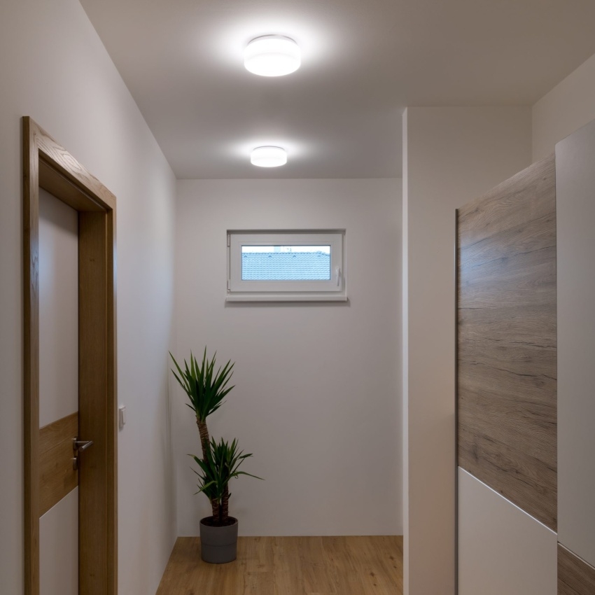 Model Osmont Delia 1A nabízí univerzální použití díky možnosti montáže na strop i stěnu. Svítidlo má příkon 7 W, světelný tok 740/770 lm a volitelnou teplotu chromatičnosti 3000 nebo 4000 K. Díky integrovanému DALI předřadníku lze snadno začlenit do systému řízeného osvětlení. Konstrukce z oceli a opálového polykarbonátu zaručuje dlouhou životnost a vysokou odolnost proti nárazu (IK10). Krytí IP54 umožňuje použití i v prostorech s vyšší vlhkostí, jako jsou chodby, sociální zařízení či technické místnosti. Svítidlo má velmi dobré podání barev (CRI Ra80) a životnost až 100 000 hodin (L80/B10). Zacvakávací svorkovnice zajišťuje rychlou a bezproblémovou instalaci.