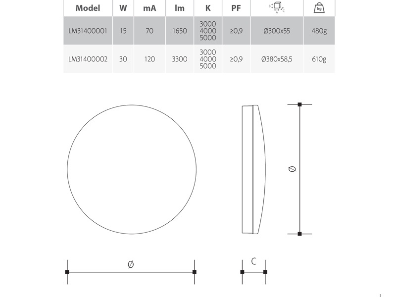 Přisazené stropní nebo nástěnné LED svítidlo značky LEDMED je stmívatelné (TRIAK) a umožňuje změnu teploty světla pomocí přepínače pod krytem svítidla. Teplotu chromatičnosti lze nastavit na 3000 K, 4000 K nebo 5000 K. Základna i kryt jsou z plastu a svítidlo má kulaté provedení. Je vhodné pro osvětlení chodeb činžovních a panelových domů a sociálních zařízení.